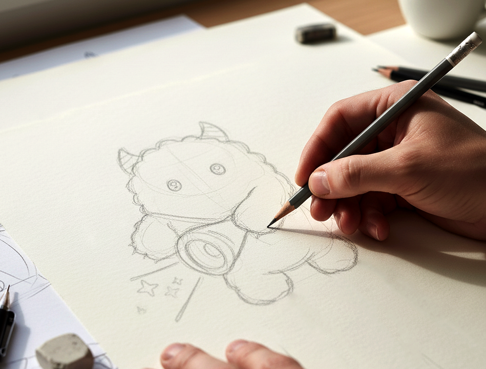 ヒアリングに基づき、世界観を形にするコンセプト立案から着手。キャラクターのラフ案を 2 案制作し、選定いただいた 1 案を納品データとして仕上げます。