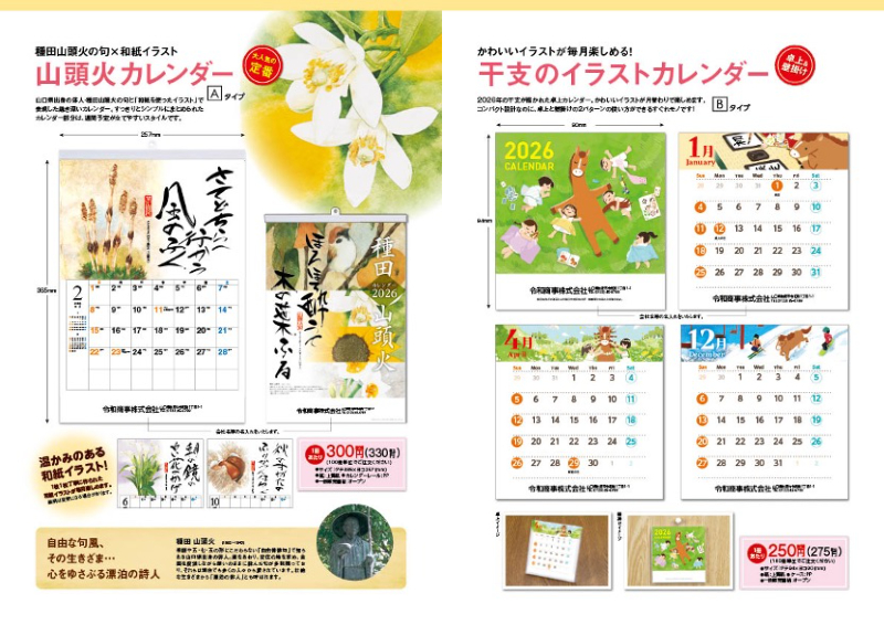 会社名をカレンダーに印刷できる「名入れカレンダー」。お客様や取引先への年末のご挨拶にぴったりと、毎年ご好評いただいております。ご自宅やオフィスに飾っていただければ、社名をPRする最強の営業ツールです。今年も2種類のデザインを用意させていただきました。